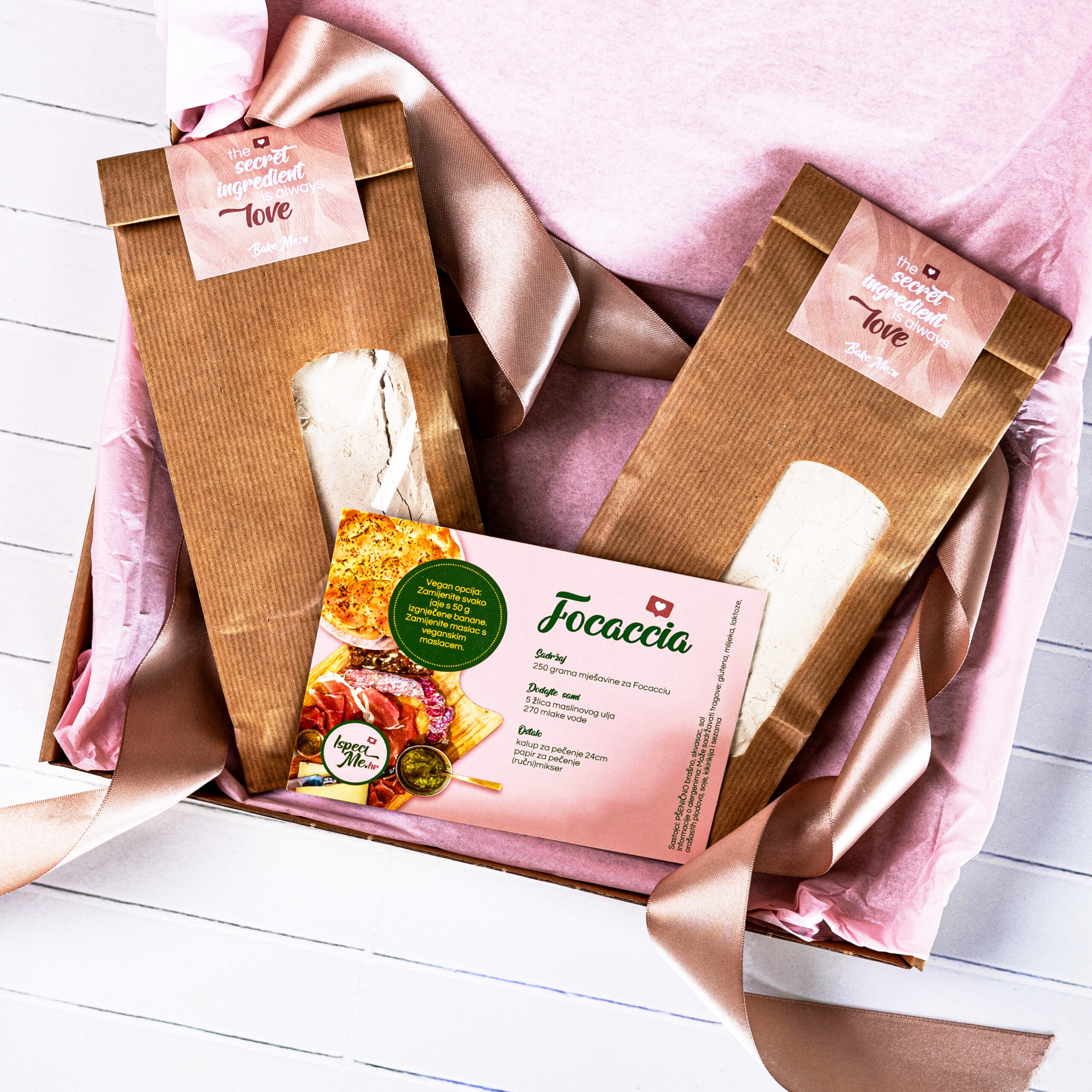 Ovaj poklon poklon paket sadrži dvije smjese za izradu focaccie, savršene za jednostavnu pripremu domaćeg kruha. Idealan za poklone za poslovne partnere, ovaj paket je odličan izbor za Božić ili kao znak pažnje tijekom godine.